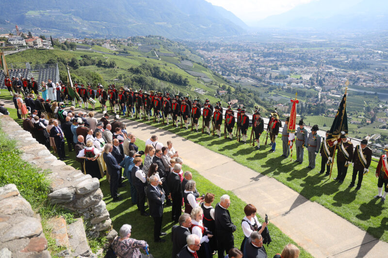 Der Tag begann mit der Frontabschreitung, gefolgt von einer feierlichen Heiligen Messe, die in ladinischer Sprache abgehalten und von einer präzise ausgeführten Ehrensalve der Schützenkompanie Sarntal begleitet wurde.