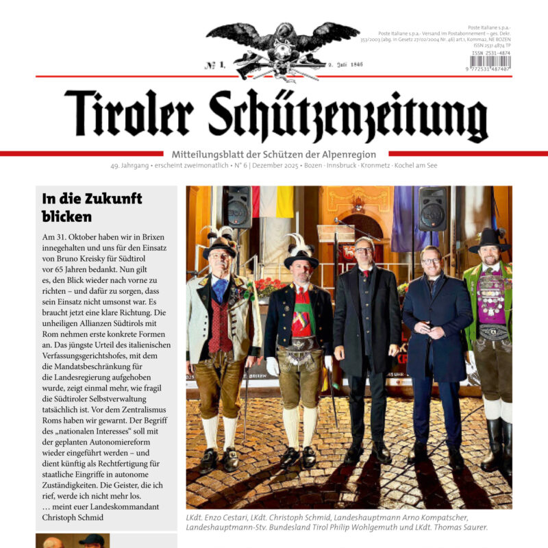 MERAN – Am Sonntag, den 22. Februar 2026, findet in Meran die große Landesgedenkfeier zu Ehren unseres Freiheitshelden Andreas Hofer statt. Zu dieser traditionsreichen Feier sind neben den Schützen Tirols auch die Bevölkerung herzlich eingeladen.